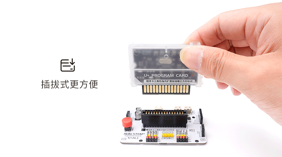 採用插拔方式與擴展板相連,一張U+卡就能在多個項目中輕鬆切換使用,這種快速插拔切換體驗方便到讓人上癮。