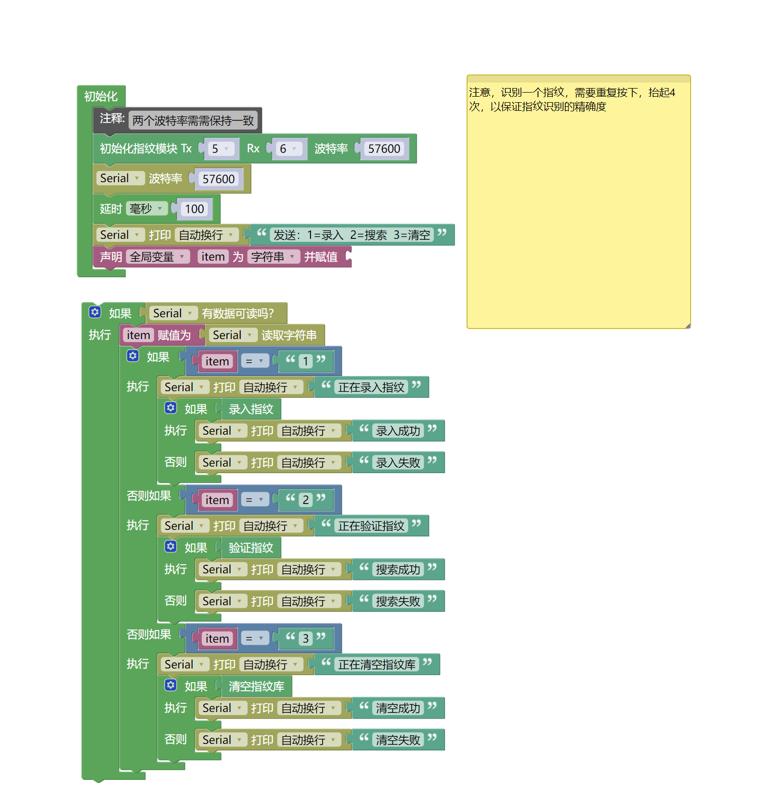 Serial.println("发送:1=录入 2=搜索 3=清空");