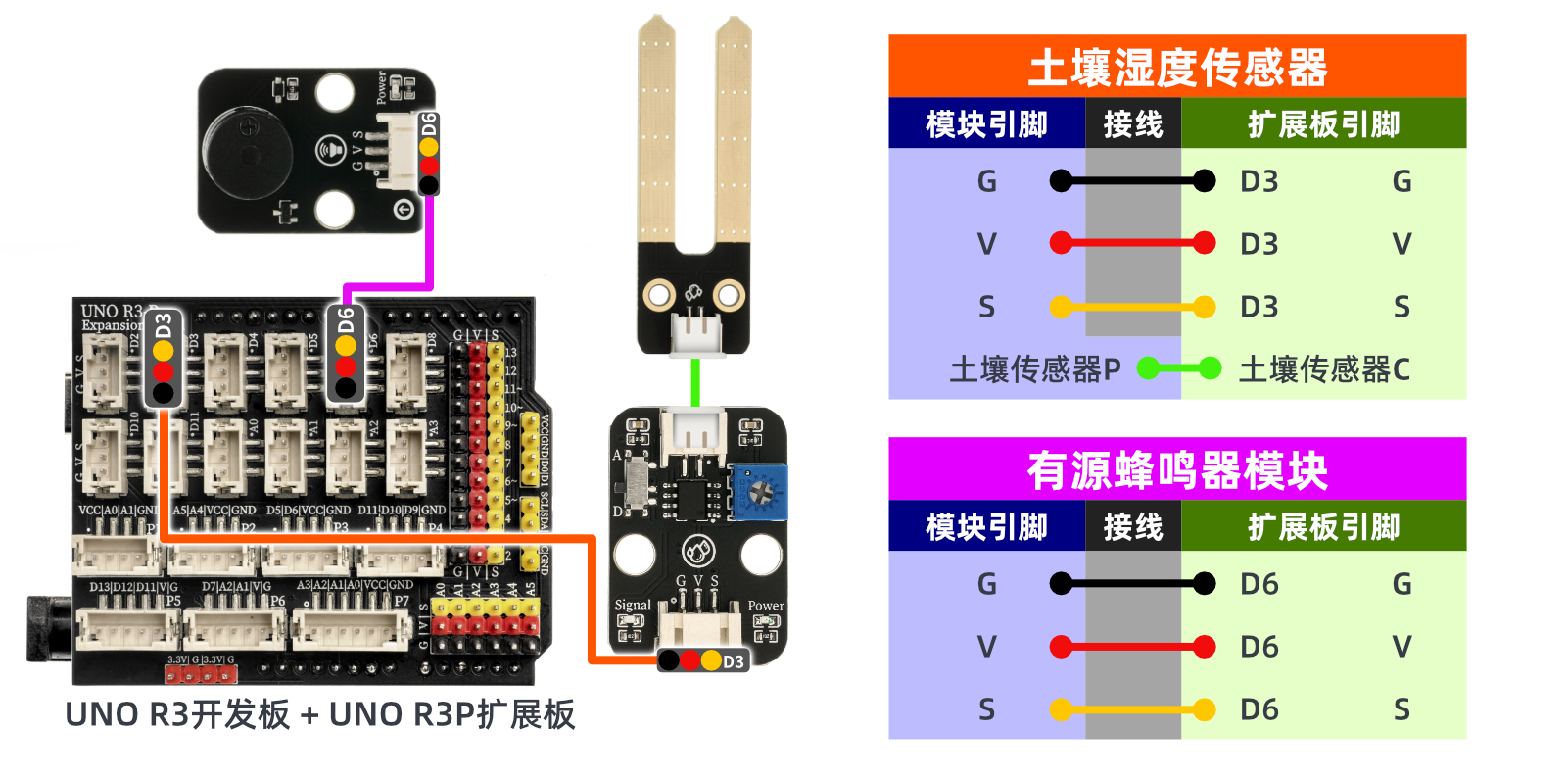 //雨滴检测模块接D3,有源蜂鸣器接开发板D6