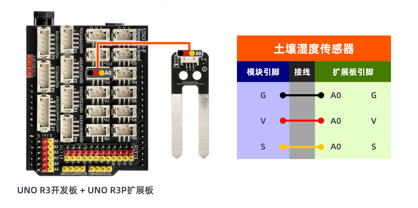 土壤濕度感應器模塊有兩條銅條是感應探头。將它們插入土壤時,它們可以檢測到土壤的水分。土壤濕潤,導電性越好,反映出它們之間的電阻越低。土壤乾燥,導電性就相對差一點,因此他們之間的電阻越高。它是模擬感測器,因此我們通過模擬輸入獲得電壓值。因為土壤的濕度可以分為幾個等級,當我們使用土壤濕度感應器做一個自動澆花系統的時候,將方便的使用。