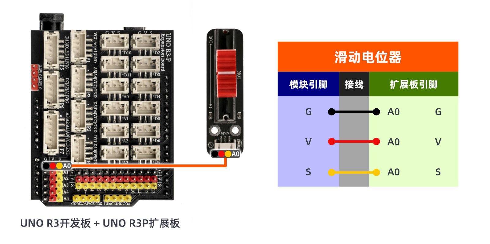 //滑动电位器接A0;