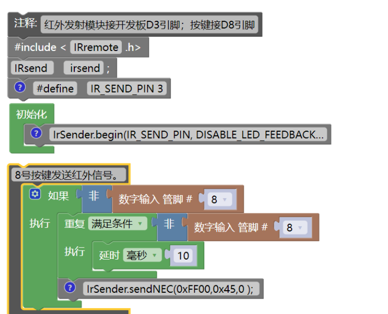 1.紅外信號發送模組程式(相當於紅外遙控器)
