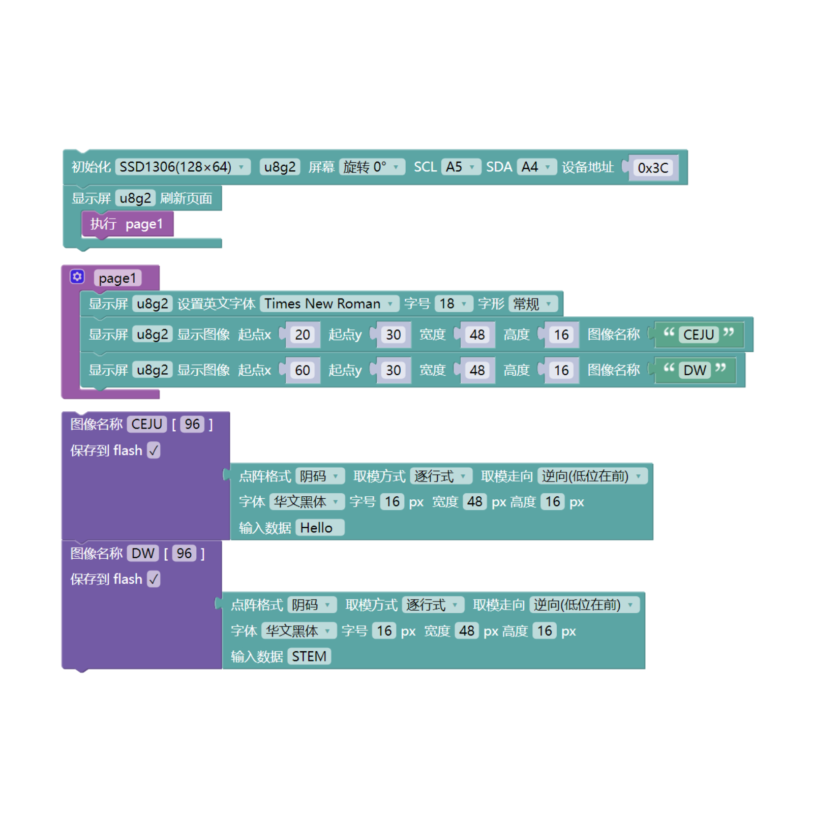 在OLED屏上顯示我們程序中設定的文字及圖片。