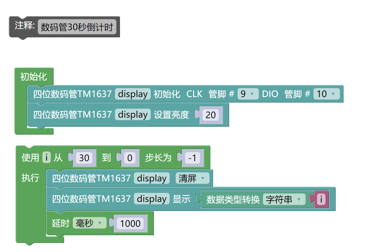 上傳程式到 Arduino UNO 開發板之後,會看到數碼管開始30秒倒計時;同時了解到四段七位數碼管相當於幾個LED燈點亮和熄滅達到我們想要的效果。