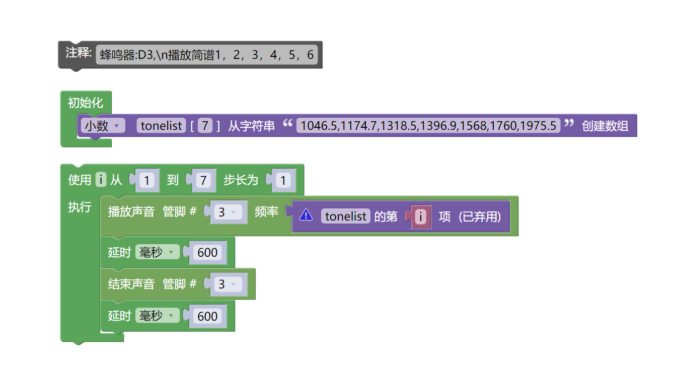//蜂鸣器:D3,\n播放简谱1,2,3,4,5,6