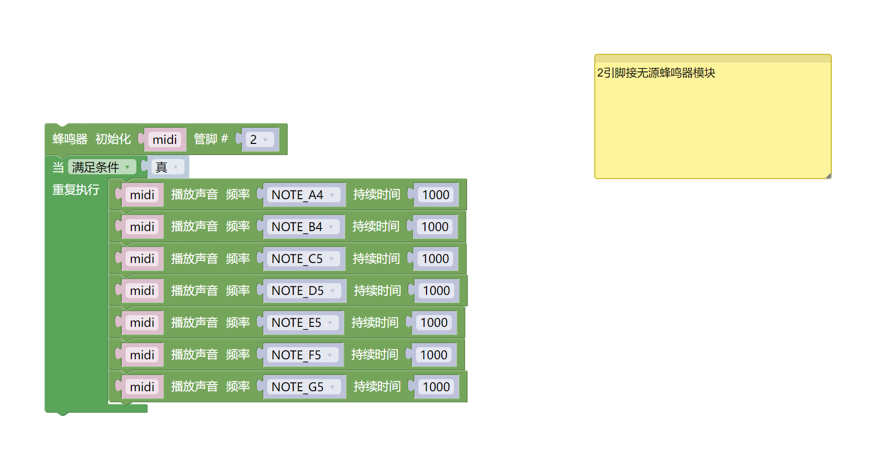 midi.pitch_time(784, 1000)7、米思齊 Mixly 示例程式(圖形化語言)