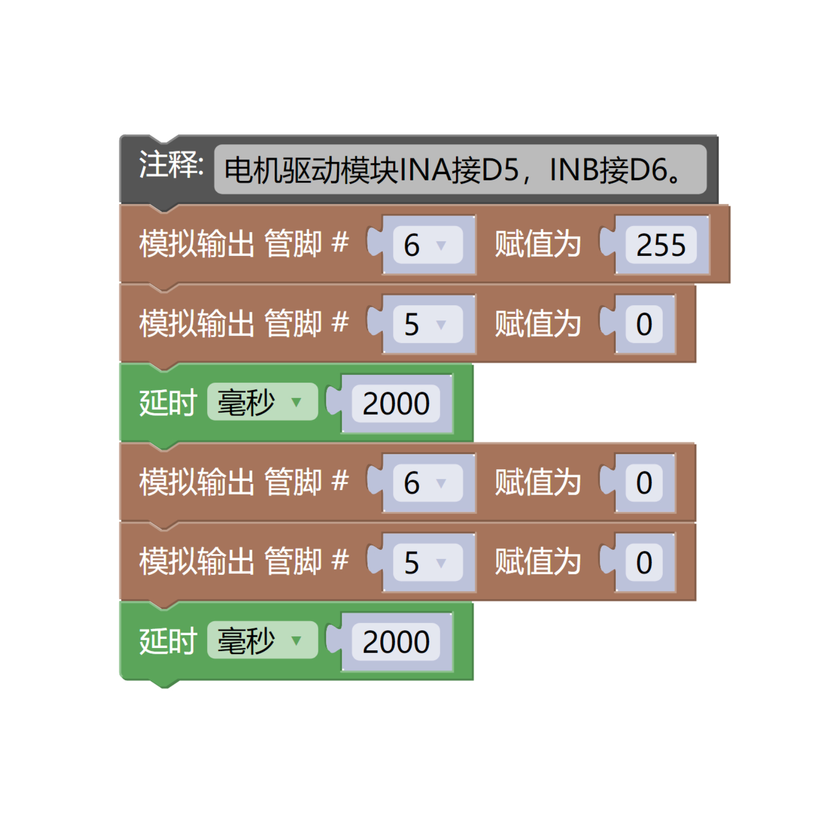 analogWrite(INA, 0); //设置电机A端口为低电平